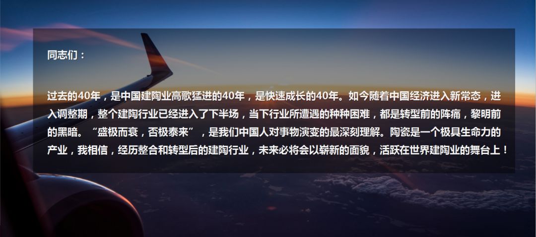 這40年里我們?nèi)〉煤芏嗟慕?jīng)驗和成績,但也存在著很多的問題,更重要的是我們今天聚集一起是要研討我們建陶下半場怎么打、怎么想、怎么干、怎么做得更加好。