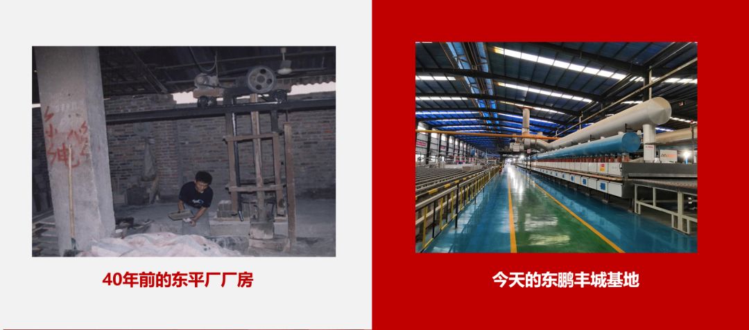 今天,東鵬在南莊鎮(zhèn)這是我四十年前報到之時的車間,耐火材料的車間,這是壓機(jī)。跟今天我們在江西豐城最新的7號窯,全智能化的生產(chǎn)線已經(jīng)是天壤之別。